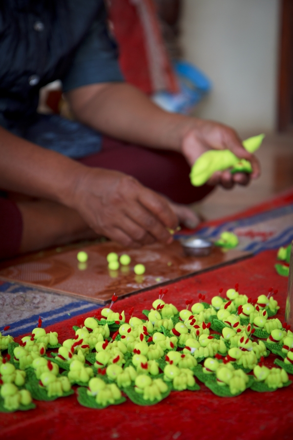 กลุ่มสตรีของชำร่วยผัก,ผลไม้ เป็นกลุ่มอาชีพทำพวงกุญแจจากแป้งปั้น รูปสัตว์ และผลไม้ต่าง ๆ โดย คุณมาลี ทัศนลัย 125 ม.3 ต.บ้านในดง อ.ท่ายาง เพชรบุรี โทรศัพท์ 084-569-4567