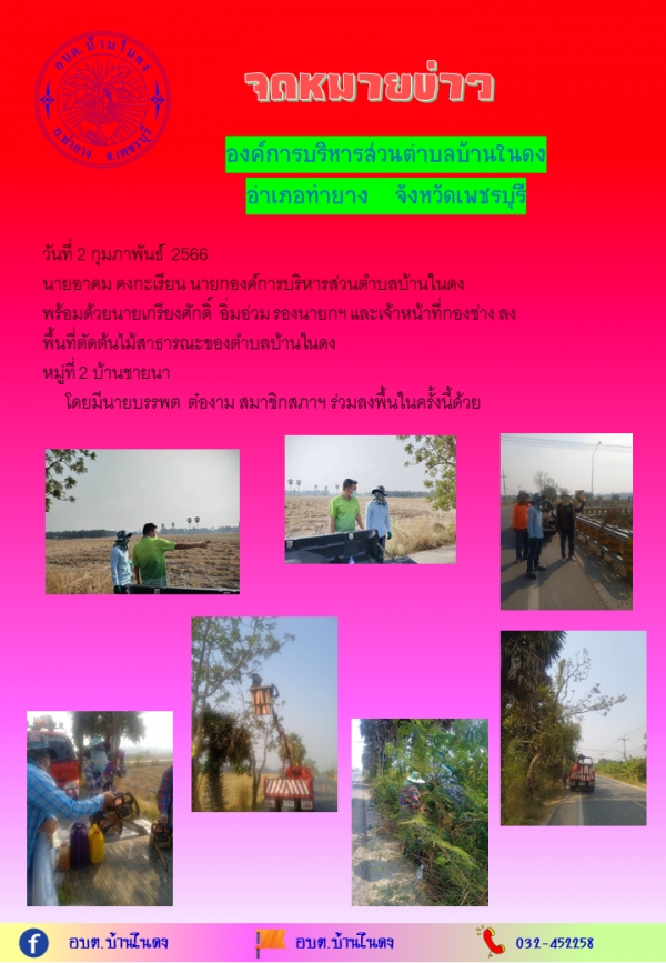 วันที่ 2 กุมภาพันธ์ 2566ลงพื้นที่ตัดต้นไม้สาธารณะของตำบลบ้านในดง