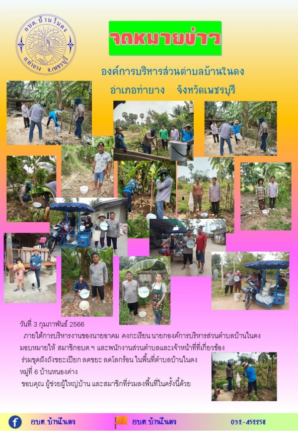3 กุมภาพันธ์ 2566ร่วมขุดฝังถังขยะเปียก ลดขยะ ลดโลกร้อน ในพื้นที่ตำบลบ้านในดง