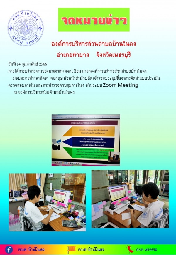 มอบหมายห้างอาทิตยา คชกฤษ หัวหน้าสำนักปลัด เข้าร่วมประชุมชี้แจงการจัดทำแบบประเมินตรวจสอบภายใน และการสำรวจควบคุมภายในฯ ผ่านระบบ Zoom Meeting