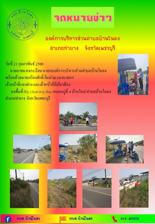 ลงพื้นที่ Big cleaning day ถนนหมู่ที่ 4 บ้านใหม่ ตำบลบ้านในดง อำเภอท่ายาง จังหวัดเพชรบุรี