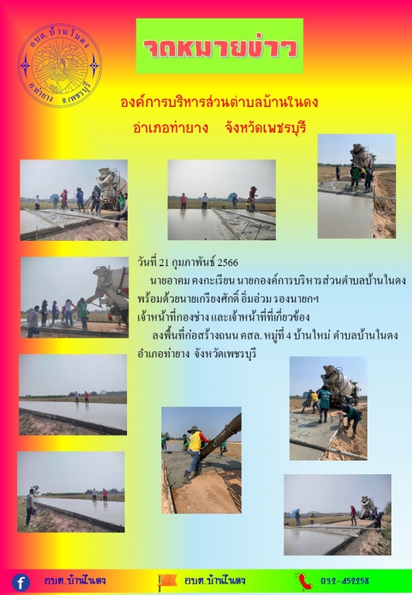 ลงพื้นที่ก่อสร้างถนน คสล. หมู่ที่ 4 บ้านใหม่ ตำบลบ้านในดง อำเภอท่ายาง จังหวัดเพชรบุรี