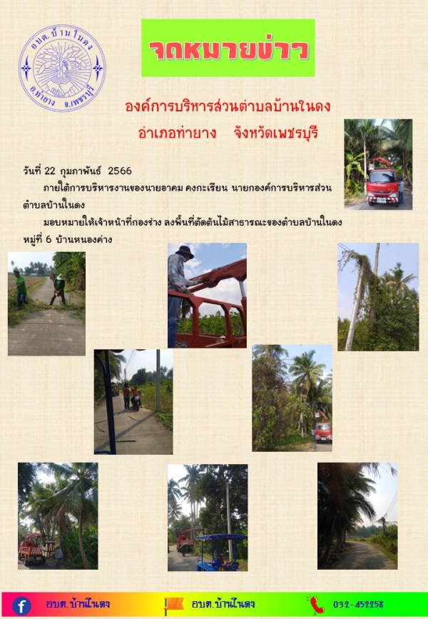 วันที่ 22 กุมภาพันธ์ 2566ลงพื้นที่ตัดต้นไม้สาธารณะของตำบลบ้านในดง