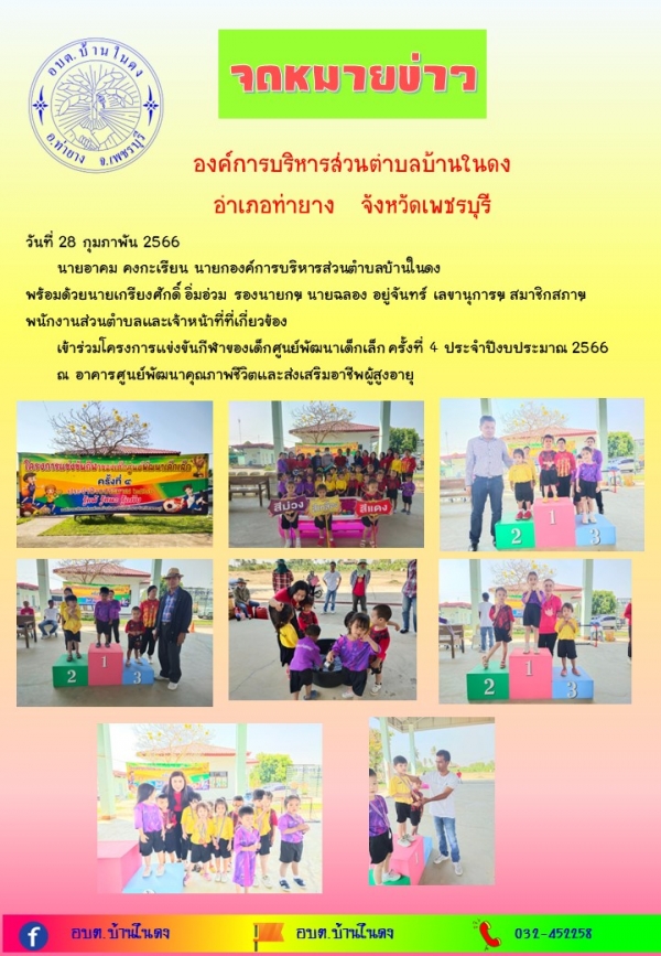 วันที่ 28 กุมภาพันธ์ 2566เข้าร่วมโครงการแข่งขันกีฬาของเด็กศูนย์พัฒนาเด็กเล็ก ครั้งที่ 4