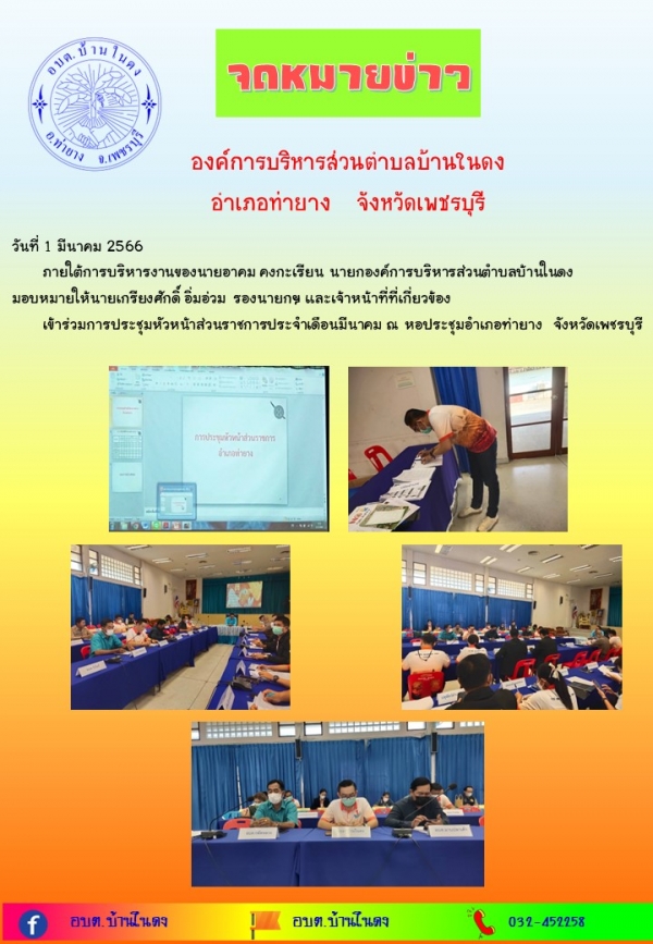 เข้าร่วมการประชุมหัวหน้าส่วนราชการประจำเดือนมีนาคม ณ หอประชุมอำเภอท่ายาง จังหวัดเพชรบุรี