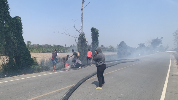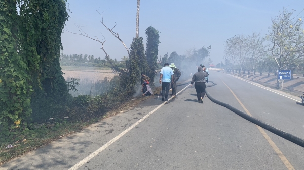 ลงพื้นที่ดับไฟถนนเลียบคลองชลประทานสาย 2 เพชรเกษม – หนองจอก บริเวณหมู่ที่ 2 บ้านชายนา ตำบลบ้านในดง อำเภอท่ายาง จังหวัดเพชรบุรี