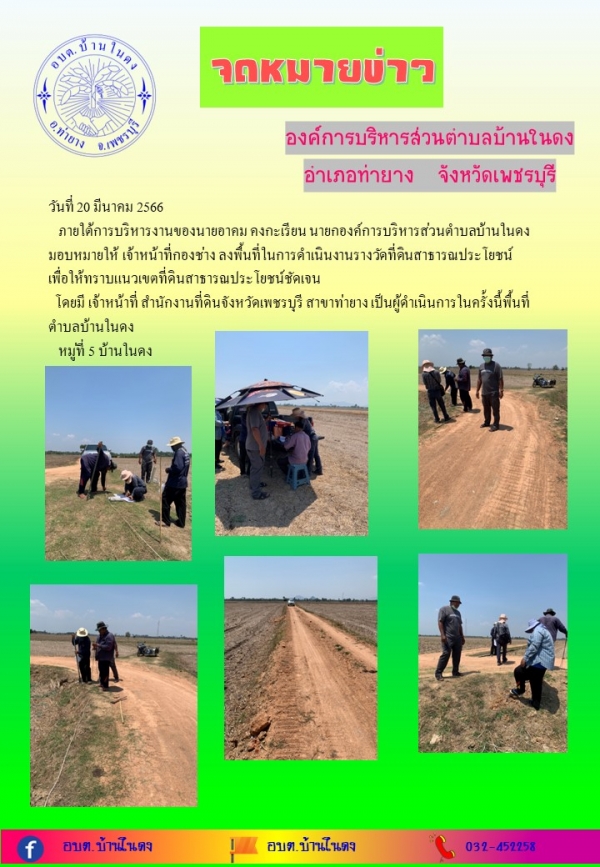 โดยมี เจ้าหน้าที่ สำนักงานที่ดินจังหวัดเพชรบุรี สาขาท่ายาง เป็นผู้ดำเนินการในครั้งนี้พื้นที่ตำบลบ้านในดง