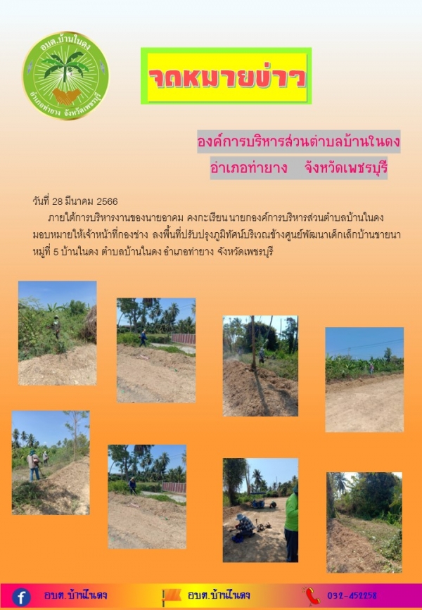 มอบหมายให้เจ้าหน้าที่กองช่าง ลงพื้นที่ปรับปรุงภูมิทัศน์บริเวณข้างศูนย์พัฒนาเด็กเล็กบ้านชายนา หมู่ที่ 5 บ้านในดง ตำบลบ้านในดง อำเภอท่ายาง จังหวัดเพชรบุรี