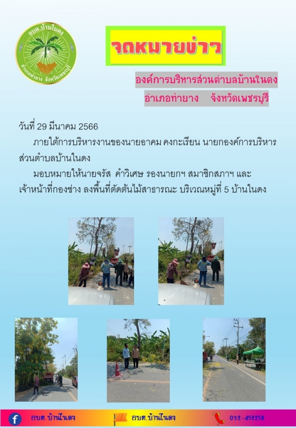 29 มีนาคม 2566ลงพื้นที่ตัดต้นไม้สาธารณะ บริเวณหมู่ที่ 5 บ้านในดง