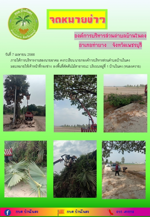 7 เมษายน 2566ลงพื้นที่ตัดต้นไม้สาธารณะ บริเวณหมู่ที่ 1 บ้านในดง (หนองควาย)