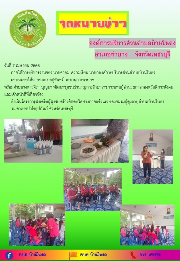 ดำเนินโครงการุส่งเสริมผู้สูงวัย สร้างจิตสดใส ร่างกายแข็งแรง ของชมรมผู้สูงอายุตำบลบ้านในดง