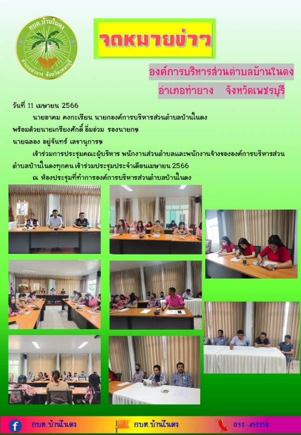 เข้าร่วมการประชุมคณะผู้บริหาร พนักงานส่วนตำบลและพนักงานจ้างขององค์การบริหารส่วนตำบลบ้านในดงทุกคน เข้าร่วมประชุมประจำเดือนเมษายน 2566
