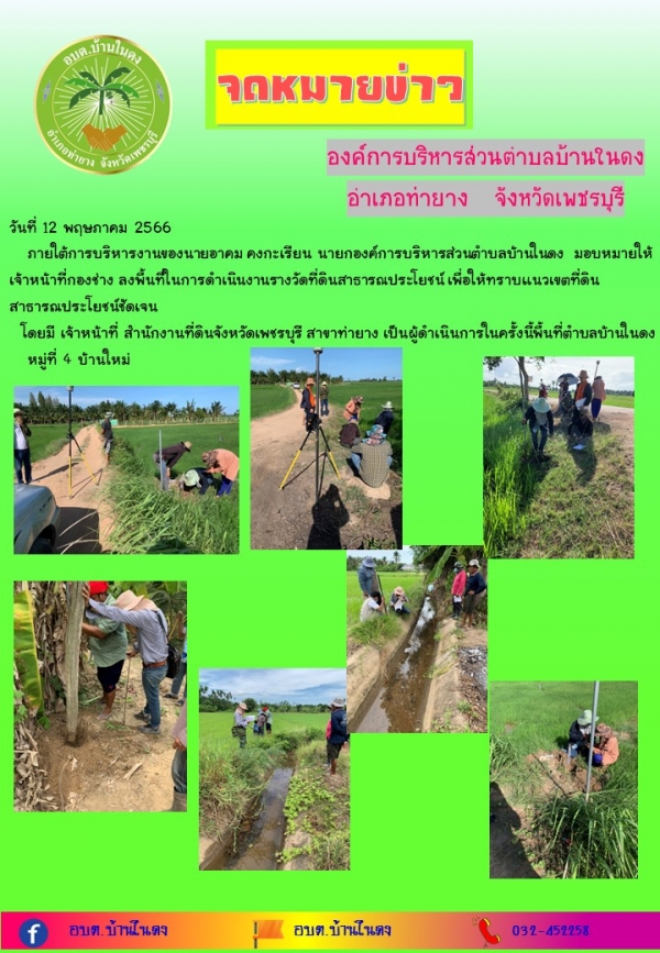 ภายใต้การบริหารงานของนายอาคม คงกะเรียน นายกองค์การบริหารส่วนตำบลบ้านในดง มอบหมายให้ เจ้าหน้าที่กองช่าง ลงพื้นที่ในการดำเนินงานรางวัดที่ดินสาธารณประโยชน์ เพื่อให้ทราบแนวเขตที่ดินสาธารณประโยชน์ชัดเจน