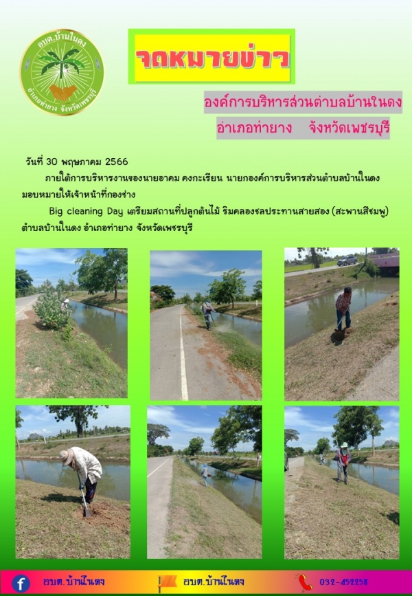 Big cleaning Day เตรียมสถานที่ปลูกต้นไม้ ริมคลองชลประทานสายสอง (สะพานสีชมพู) ตำบลบ้านในดง อำเภอท่ายาง จังหวัดเพชรบุรี