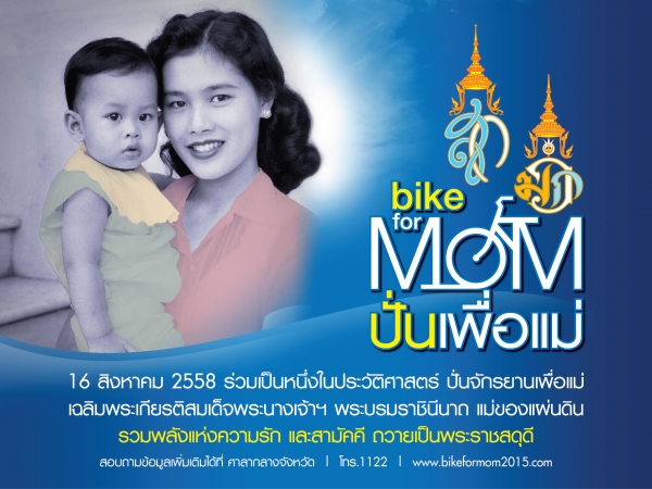 โดยกิจกรรม bike for mom "ปั่นเพื่อแม่" นี้จะมีขึ้นในวันอาทิตย์ที่ 16 สิงหาคม พ.ศ.2558 เวลา 15.00 น. โดยผู้ใดที่มีความสนใจจะเข้าร่วมกิจกรรม