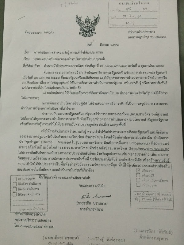 ความเข้าใจให้แก่ประชาชนตามมติคณะรัฐมนตรี เมื่อวันที่ 26 มกราคม 2559