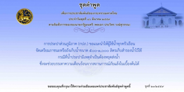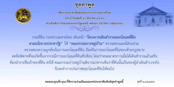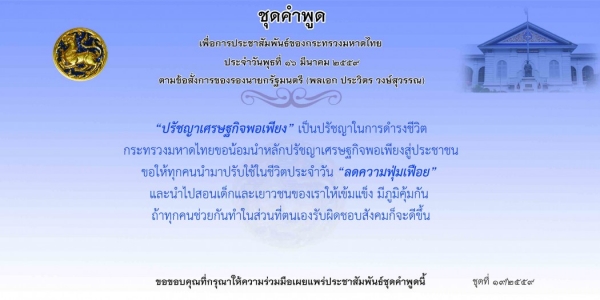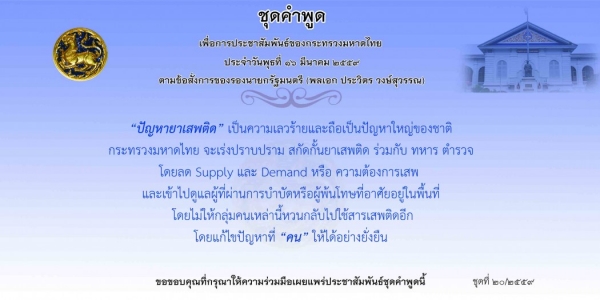 "ชุดคำพูด" (Theme Message) จัดทำโดยกระทรวงมหาดไทย