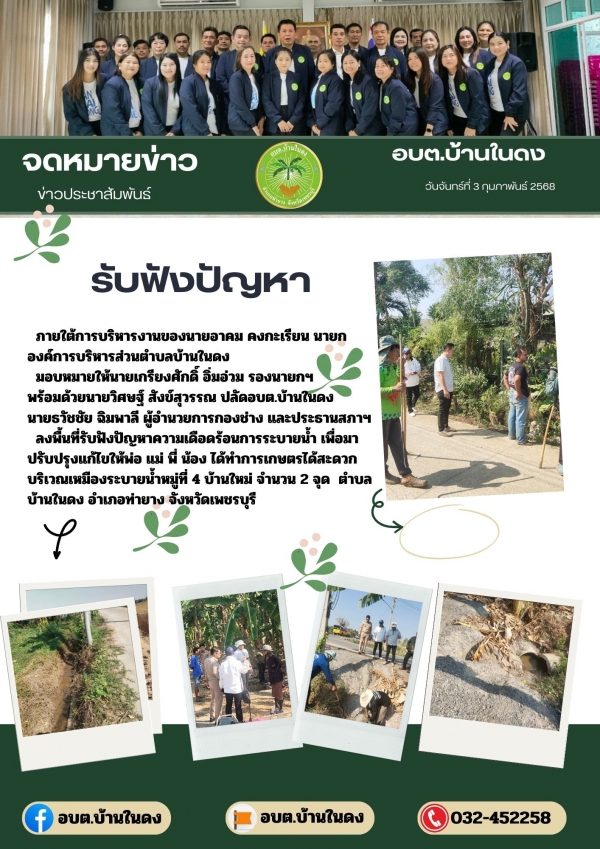 วันจันทร์ที่ 3 กุมภาพันธ์ 2568ลงพื้นที่รับฟังปัญหาความเดือดร้อนการระบายน้ำ