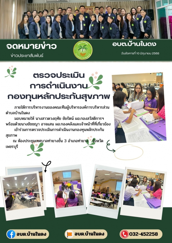 วันอังคารที่ 10 มิถุนายน 2568เข้าร่วมการตรวจประเมินการดำเนินงานกองทุนหลักประกันสุขภาพ