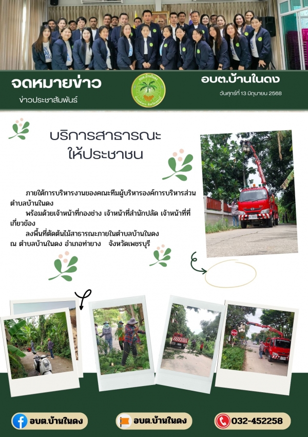 วันศุกร์ที่ 13 มิถุนายน 2568ลงพื้นที่ตัดต้นไม้สาธารณะภายในตำบลบ้านในดง
