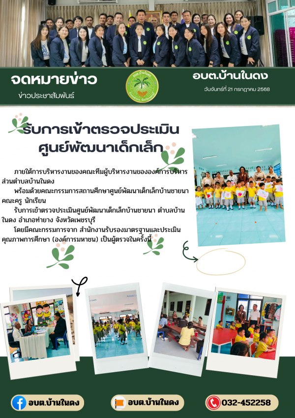วันจันทร์ที่ 21 กรกฎาคม 2568 รับการเข้าตรวจประเมินศูนย์พัฒนาเด็กเล็ก