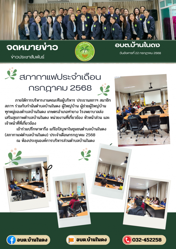 วันอังคารที่ 22 กรกฎาคม 2568สภากาแฟตำบลบ้านในดง ประจำเดือนกรกฎาคม 2568