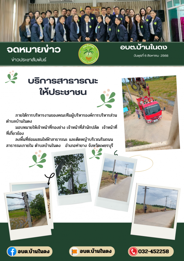 ลงพื้นที่ซ่อมแซมไฟฟ้าสาธารณะ และตัดหญ้าบริเวณริมถนนสาธารณะภายใน ตำบลบ้านในดง อำเภอท่ายาง จังหวัดเพชรบุรี