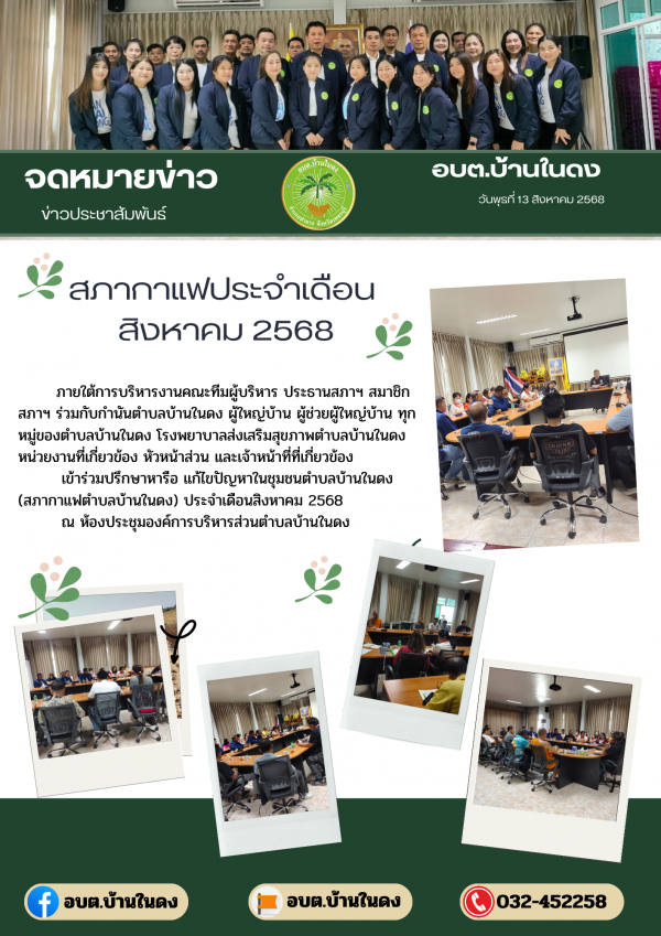 วันพุธที่ 13 สิงหาคม 2568 (สภากาแฟตำบลบ้านในดง) ประจำเดือนสิงหาคม 2568