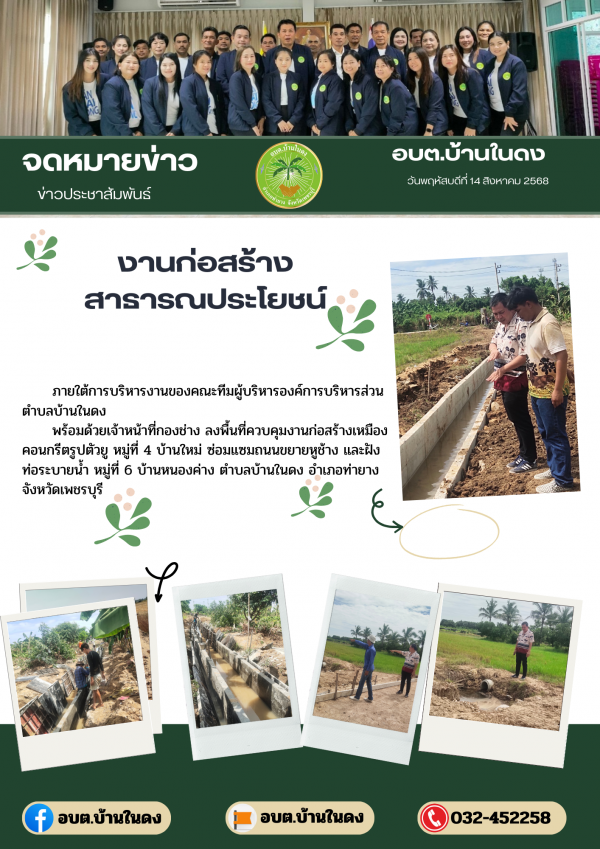 วันพฤหัสบดีที่ 14 สิงหาคม 2568 ลงพื้นที่ควบคุมงานก่อสร้าง