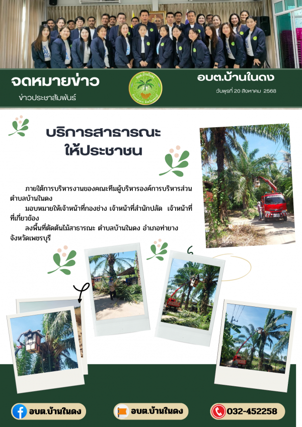 ลงพื้นที่ตัดต้นไม้สาธารณะ ตำบลบ้านในดง อำเภอท่ายาง จังหวัดเพชรบุรี