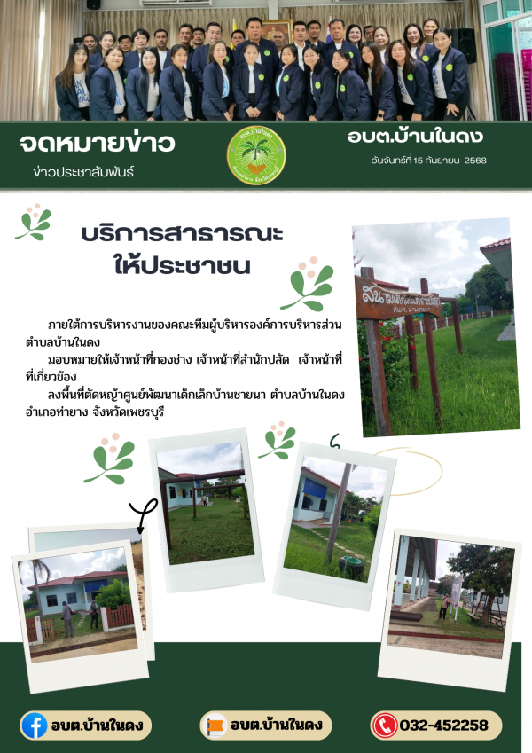ลงพื้นที่ตัดหญ้าศูนย์พัฒนาเด็กเล็กบ้านชายนา ตำบลบ้านในดง อำเภอท่ายาง จังหวัดเพชรบุรี