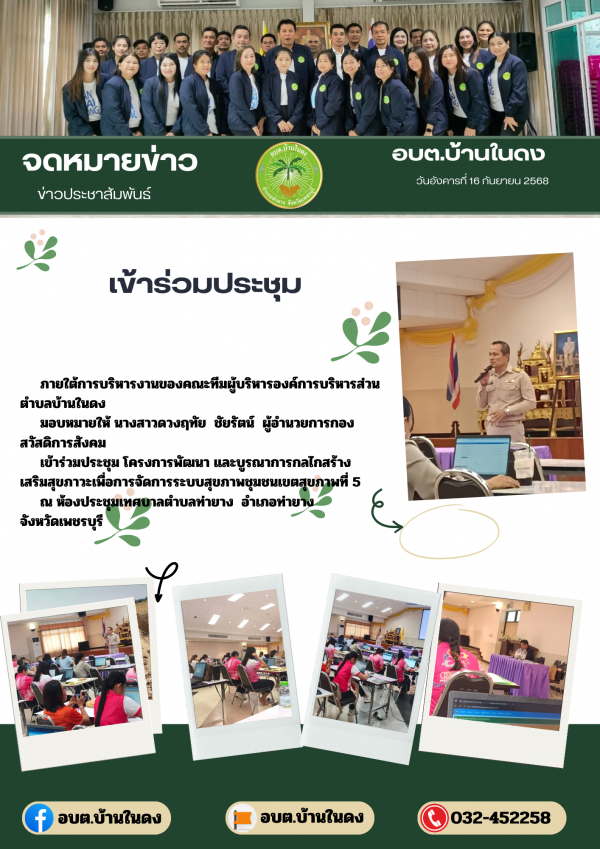 วันอังคารที่ 16 กันยายน 2568เข้าร่วมประชุม โครงการพัฒนา และบูรณาการกลไกสร้างเสริมสุขภาวะเพื่อการจัดการระบบสุขภาพชุมชนเขตสุขภาพที่ 5