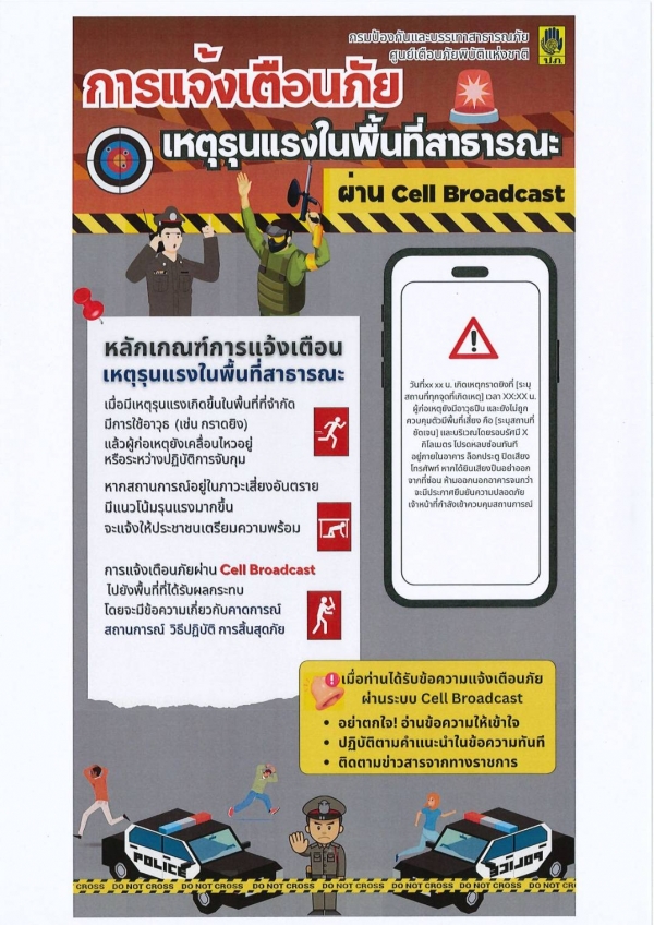 การประชาสัมพันธ์และสร้างการรับรู้การใช้งานระบบแจ้งเดือนภัยผ่านสัญญาณโทรศัพท์ (Cell Broadcast)