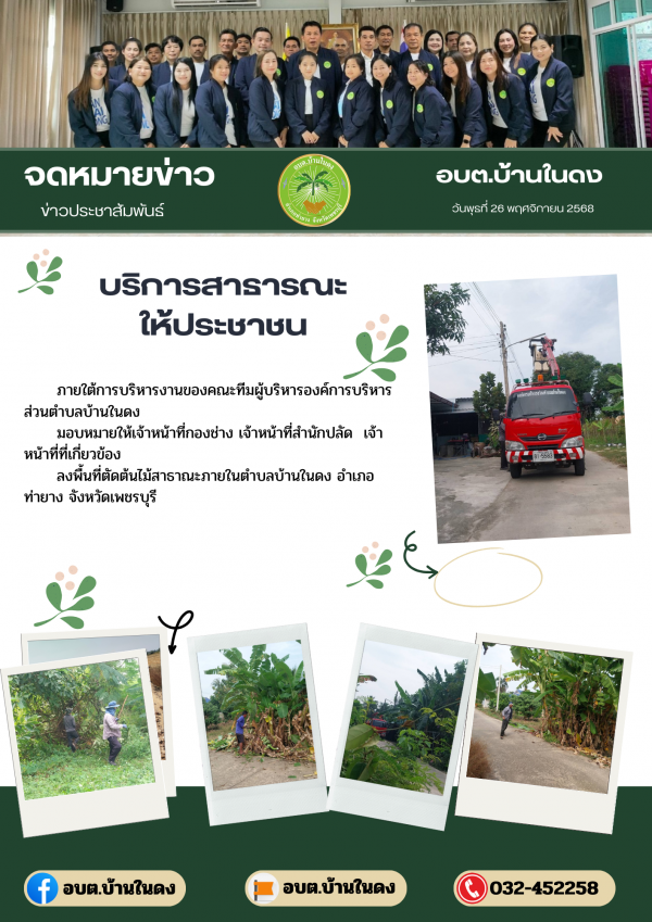 วันพุธที่ 26 พฤศจิกายน 2568ลงพื้นที่ตัดต้นไม้สาธาณะ