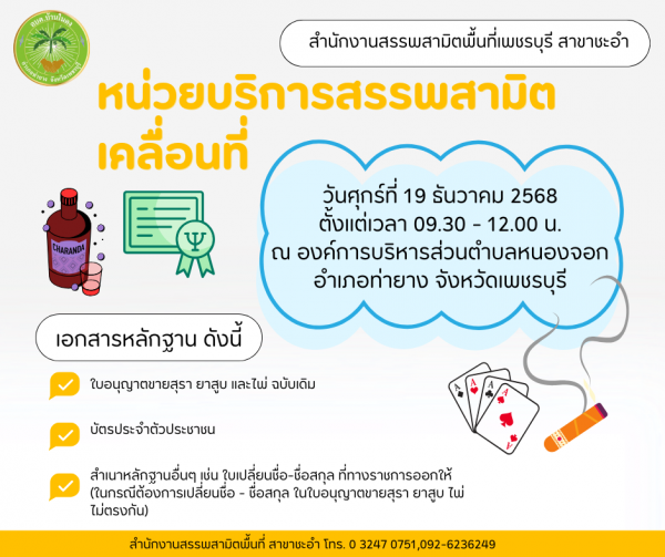 ข่าวฝากประชาสัมพันธ์ จาก สำนักงานสรรพสามิตพื้นที่เพชรบุรี สาขาชะอำ
