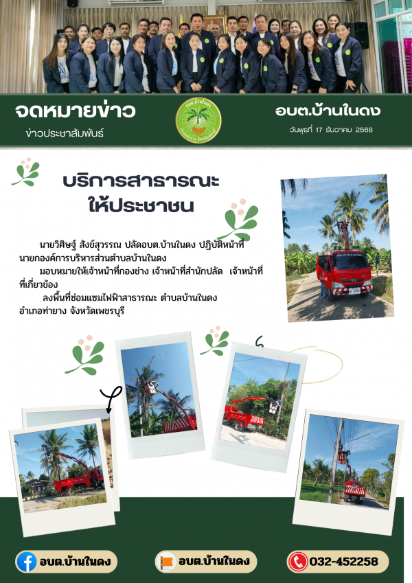วันพุธที่ 17 ธันวาคม 2568ลงพื้นที่ซ่อมแซมไฟฟ้าสาธารณะ