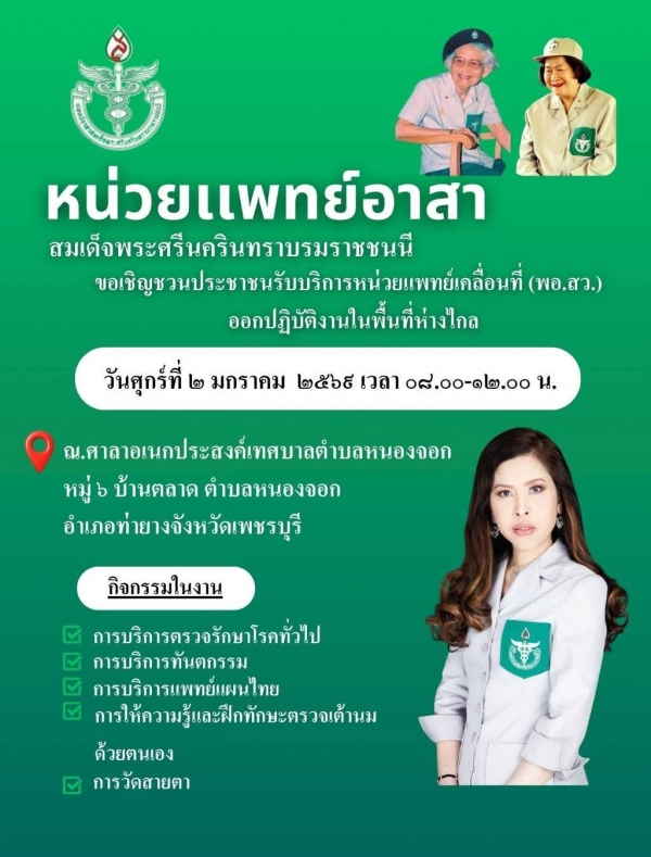 วันจันทร์ที่ 29 ธันวาคม 2568ขอเชิญชวนประชาชนรับบริการหน่วยแพทย์เคลื่อนที่ (พอ.สว.)