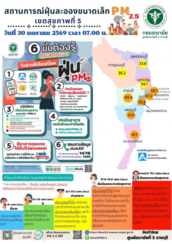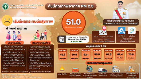ประกาศแจ้งเตือนคุณภาพอากาศ PM 2.5 จังหวัดเพชรบุรี ประจำวันศุกร์ที่ 30 มกราคม 2569