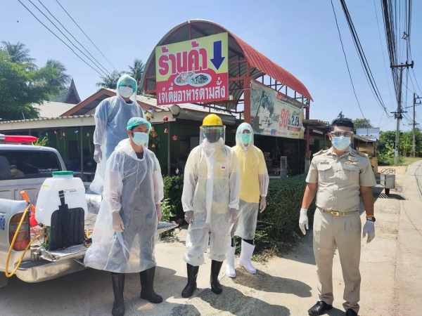 ลงพื้นที่ฉีดน้ำยาฆ่าเชื้อเพื่อป้องกันโรคติดต่อไวรัสโควิด 19 จุดสี่ยงในตำบลบ้านในดง