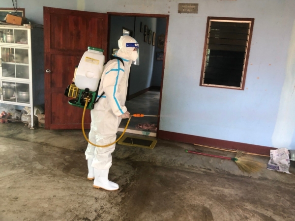 2 มีนาคม 2565 ลงพื้นที่ฉีดน้ำยาฆ่าเชื้อเพื่อป้องกันโรคติดต่อไวรัสโคโรน่า 2019 (โควิด 19) (เคสที่มีความเสี่ยงสูง)