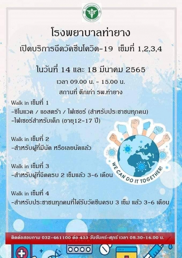 องค์การบริหารส่วนตำบลบ้านในดง ขอเชิญชวน พ่อ แม่ พี่ น้อง ตำบลบ้านในดง ไปฉีดวัคซีนโควิด-19 เข็มที่ 1,2,3,4 ได้ที่โรงพยาบาลท่ายาง ตามวันและเวลาดังนี้นะค่ะ⬇️