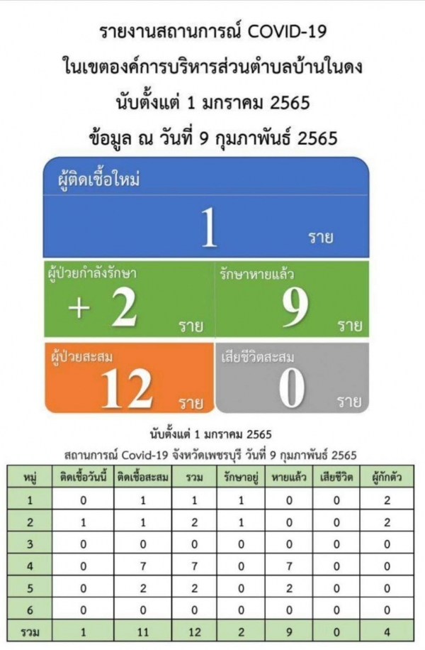สถานการณ์โควิด-19 วันที่ 9 กุมภาพันธ์ 2565