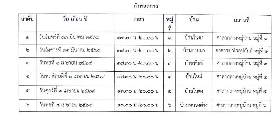 วันอังคารที่ 24 มีนาคม 2569ประชาสัมพันธ์: ขอเชิญร่วมเวทีประชาคมตำบลบ้านในดง