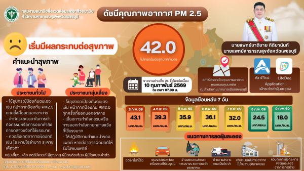 ประกาศแจ้งเตือนคุณภาพอากาศ PM 2.5 จังหวัดเพชรบุรี ประจำวันอังคารที่ 10 กุมภาพันธ์ 2569
