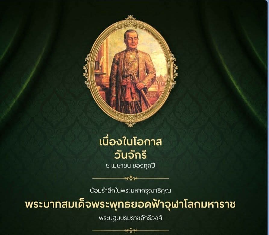 วันจันทร์ที่ 6 เมษายน 2569 ๖ เมษายน วันจักรี วันรำลึกถึงพระบาทสมเด็จพระพุทธยอดฟ้าจุฬาโลกมหาราช (รัชกาลที่ ๑)