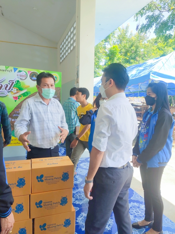 โตโยต้าเมืองเพชร ที่สนับสนุนน้ำดื่ม จำนวน 20 ลัง ให้กับองค์การบริหารส่วนตำบลบ้านในดง อำเภอท่ายาง จังหวัดเพชรบุรี