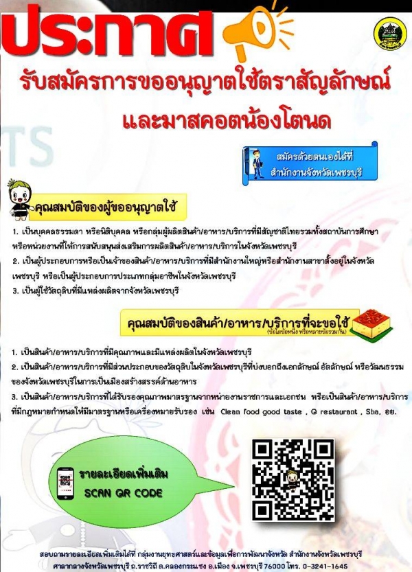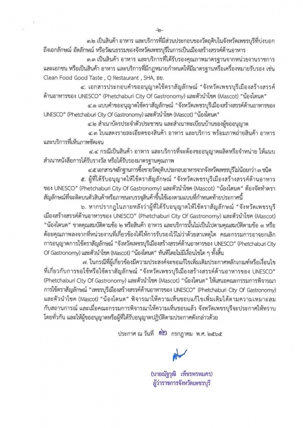 หลักเกณฑ์การขออนุญาตใช้ตาสัญลักษณ์จังหวัดเพชรบุรีเหมืองสร้างสรรค์ด้านอาหารของ UNESCO(Phetcburi City of Gastronomy)และตัวนำโชค (Mascot) "น้องโตนด"