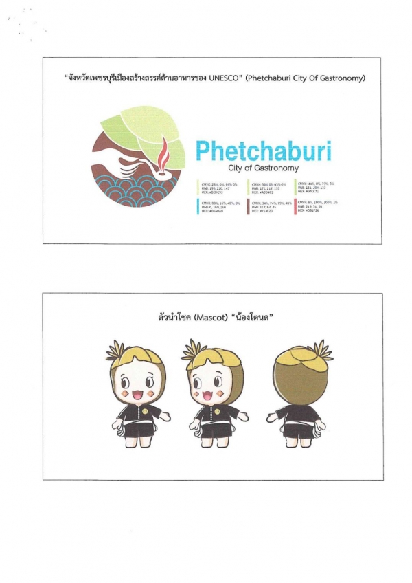 การใช้ตราสัญลักษณ์ "จังหวัดเพชรบุรีเมืองสร้างสรรค์ด้านอาหารของ "UNESCO" (Phetcburi City of Gastronomy)และตัวนำโชค (Mascot) "น้องโตนด"
