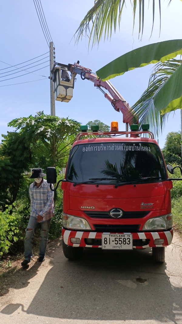 มอบหมายให้นายเกรียงศักดิ์ อิ่มอ่วม รองนายกฯ และเจ้าที่กองช่าง ลงพื้นที่ในการดำเนินงาน นำรถเครื่องจักรกลขนาดเบา (รถกระเช้า) พร้อมอุปกรณ์ซ่อมแซมไฟฟ้าสาธารณะ