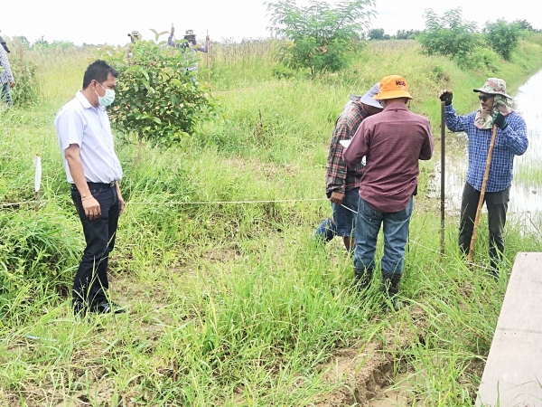 นายอุทัยวุฒิ กลิ่นกรุ่น ผอ.กองช่าง เจ้าหน้าที่กองช่าง ลงพื้นที่ในการดำเนินงานรางวัดที่ดินสาธารณประโยชน์ เพื่อให้ทราบแนวเขตที่ดินสาธารณประโยชน์ชัดเจน